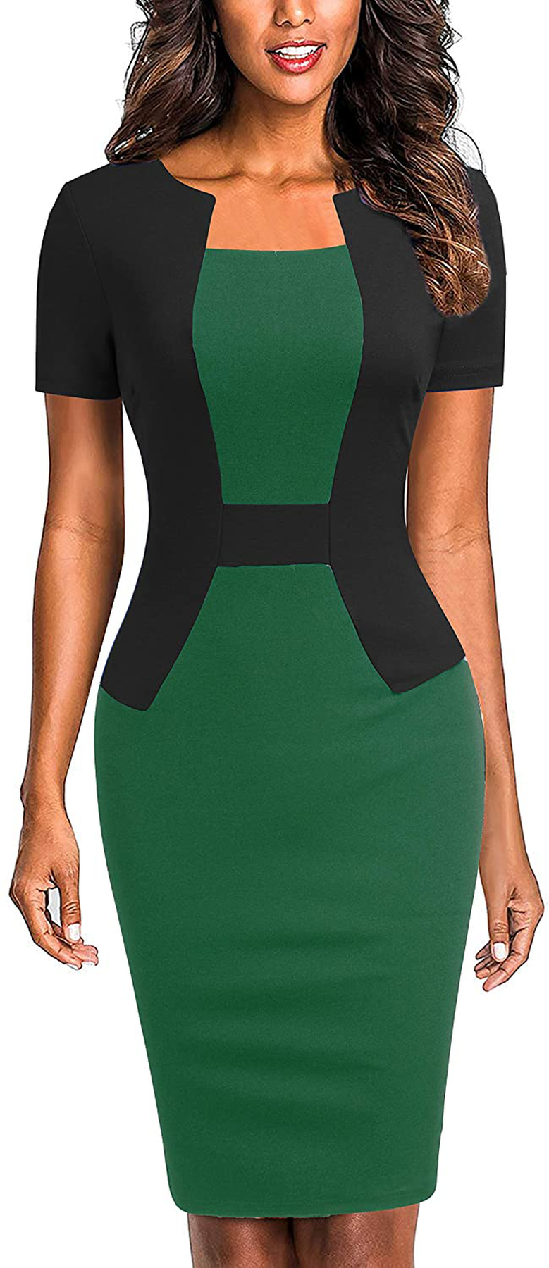 Mmondschein Women’s Short Sleeve Color block Sheath Pencil Business Church Dress