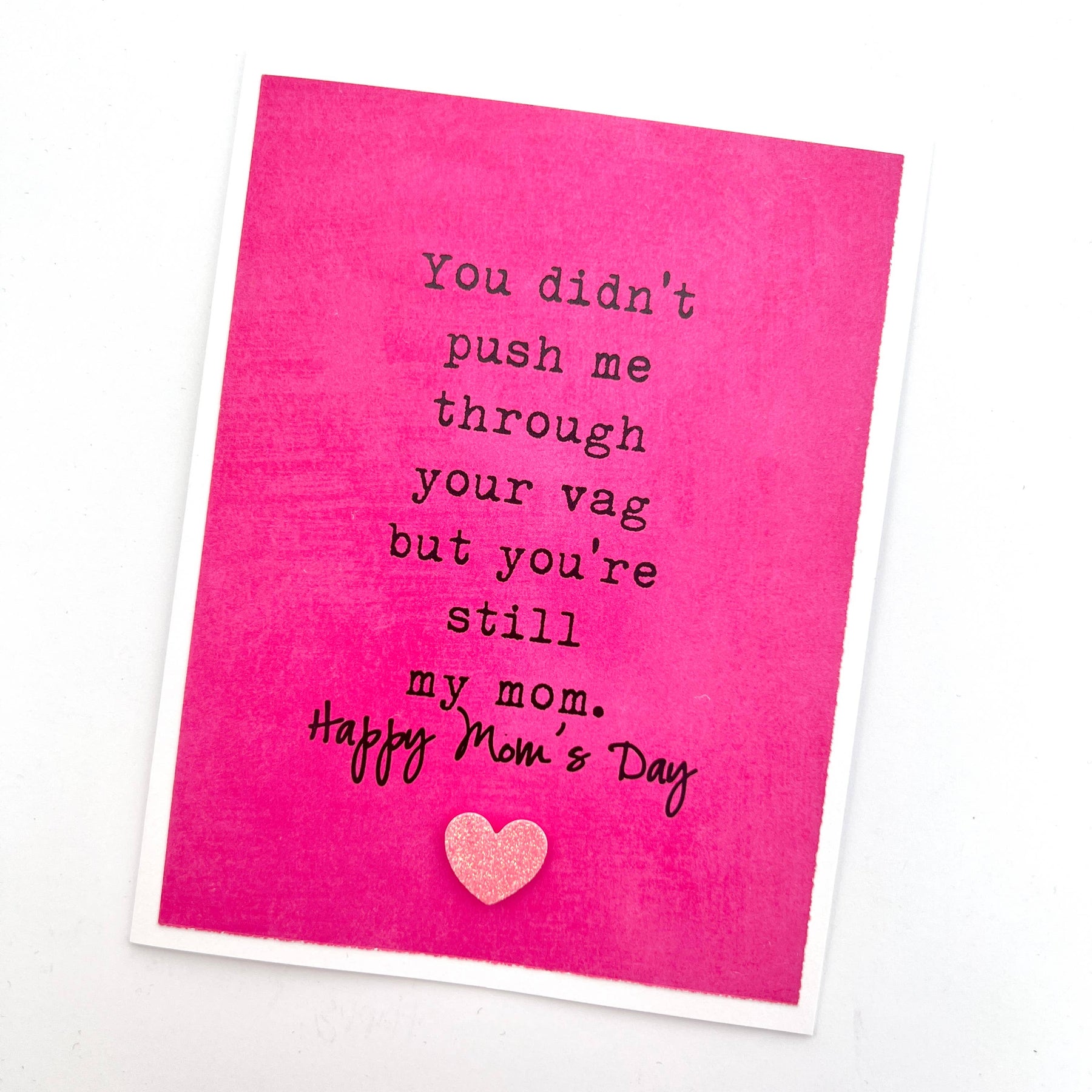 You didn’t push me through your vag but you’re still my mom. Happy mom’s day. Coming through someone’s vagina is not the qualifying reason to call someone’s mom. Each card is handmade with high-quality acid-free cardstock using laser-printing, archival adhesive, and embellishments. Cards are all blank inside and are shipped with a recycled envelope in an eco plant-based cellophane sleeve. [card size] 4.25 in x 5.5 in – a2[envelope color] recycled kraft brown [envelope size] 4.375 in x 5.75 in